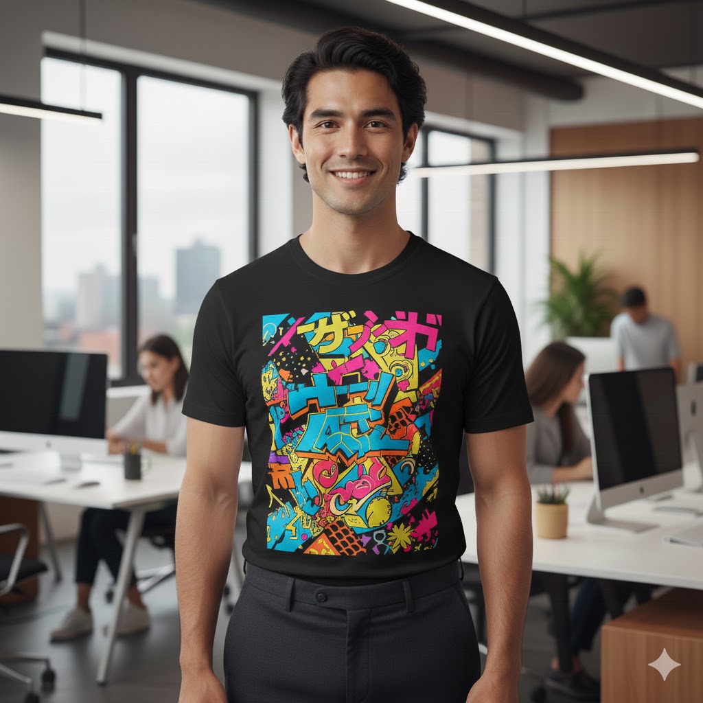 A stylish black printed T-shirt made from soft, breathable cotton with a round neck and short sleeves — perfect for casual, everyday, and streetwear looks.