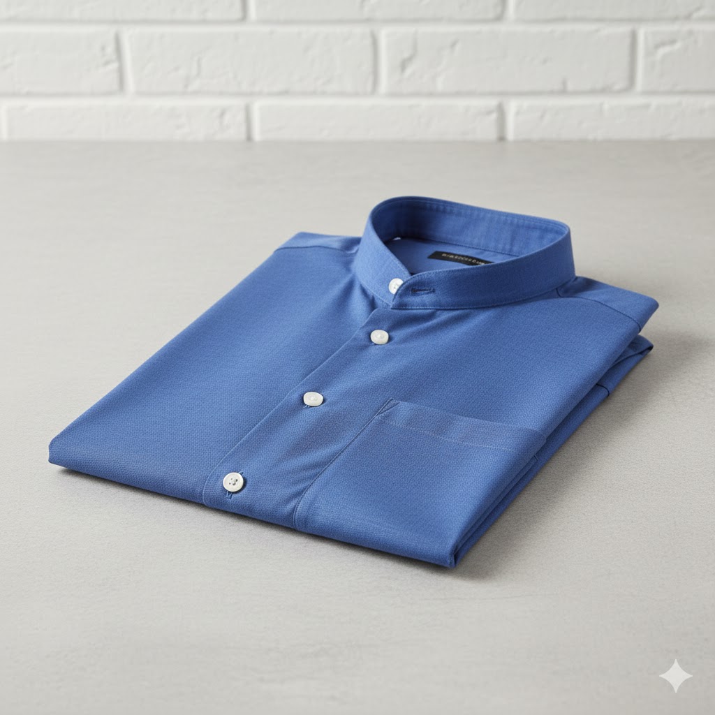 A stylish blue Chinese collar shirt made from soft, breathable fabric. Features a modern Mandarin collar, clean design, and a comfortable fit—perfect for casual, semi-formal, and festive wear.