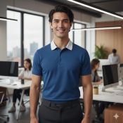 A stylish blue polo-neck T-shirt made with soft, breathable cotton featuring a classic collar, short sleeves, and a 2-button placket. Designed for everyday comfort with a neat, smart-casual look perfect for work, outings, or daily wear.