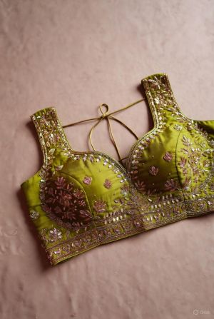 A vibrant exotic green choli crafted with intricate detailing and festive elegance. Perfect for Navratri, weddings, and traditional celebrations.