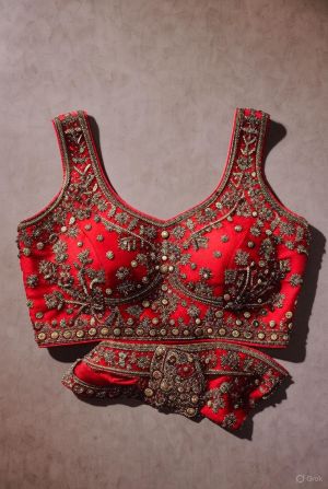 A bold and beautiful red choli crafted with elegant detailing, perfect for pairing with lehengas, chaniya cholis, sarees, and festive outfits.