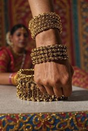 A beautifully crafted golden kada that adds a touch of elegance and tradition to your wrist. Perfect for festive occasions, weddings, and daily ethnic wear.