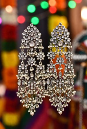 Make a statement with these elegant heavyweight earrings, designed to add a touch of glamour to any outfit. Crafted with intricate detailing and a bold design, they are ideal for traditional events, weddings, parties, or festive occasions.
