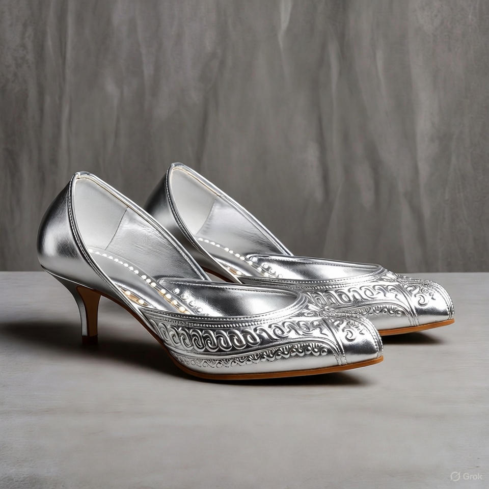 These women’s high heel silver chappals offer a stylish blend of glamour and comfort. With a shiny silver finish and elegant heel height, they elevate your look instantly—perfect for parties, weddings, festive wear, and special outings. Comfortable, classy, and effortless to wear.