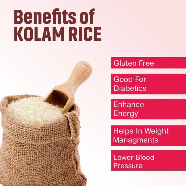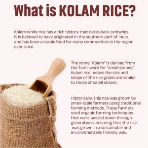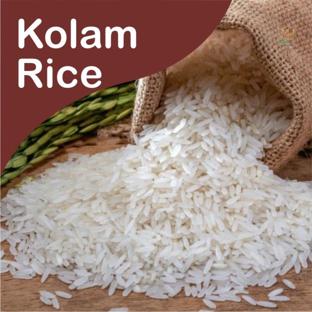 Kolam Rice is a premium, lightweight, and aromatic rice variety known for its soft texture and rich taste, perfect for daily meals and Indian recipes.