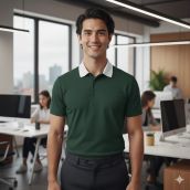 A stylish green polo-neck T-shirt crafted from soft, breathable cotton with a classic collar, button placket, and short sleeves — perfect for smart-casual everyday wear.
