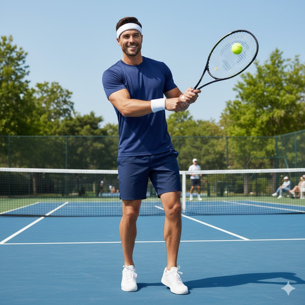 A navy blue sports T-shirt made from lightweight, breathable, and moisture-wicking fabric with a classic round neck and short sleeves — perfect for workouts, running, and active lifestyles.