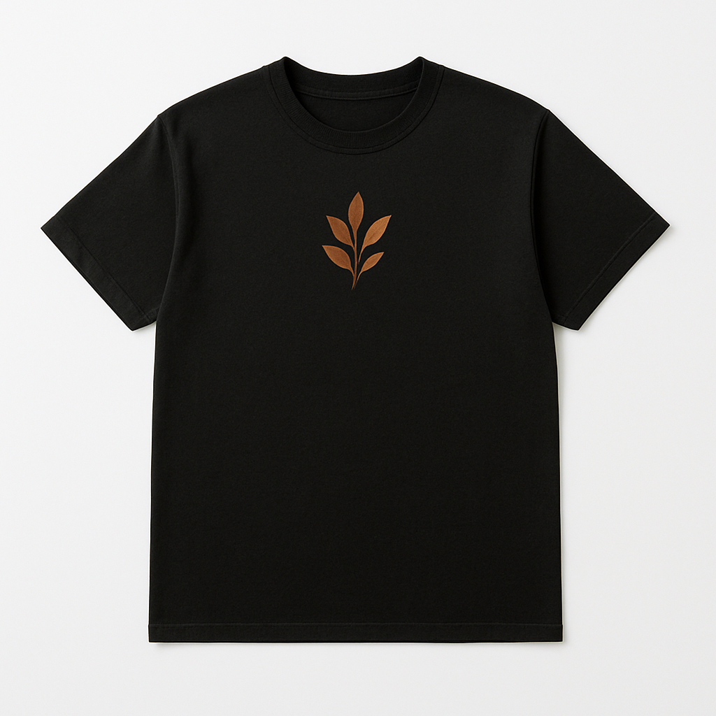 A simple black printed T-shirt made from soft, breathable cotton with a round neck and short sleeves — perfect for casual, everyday, and streetwear looks.