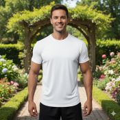 A white dry-fit T-shirt made from lightweight, breathable, and moisture-wicking fabric with a round neck and short sleeves — ideal for workouts, running, and active lifestyles.