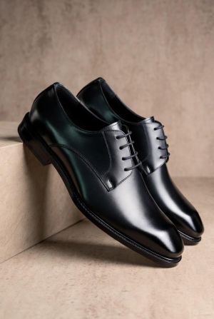 Classic black formal Derby shoes with soft cushioning for office, business meetings & formal wear.
