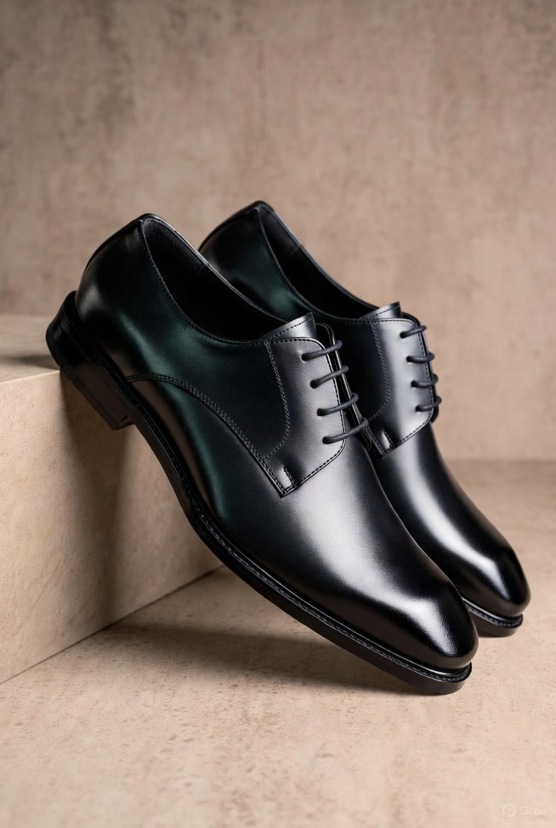Men’s Formal Derby Shoes – Premium Polish Finish, Soft Cushion Insole, Anti-Skid PU Sole (Black)