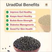 Urad Dal is naturally packed with protein, making it an excellent choice for vegetarians who need a reliable source of protein for muscle growth and energy. It is also a good source of iron and calcium, which are vital for bone health and immunity. Its dietary fiber helps improve digestion, regulate cholesterol, and support a healthy heart.