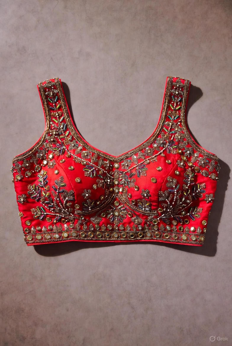 A beautifully crafted red worked choli featuring intricate embroidery, perfect for festive wear, weddings, and traditional celebrations.