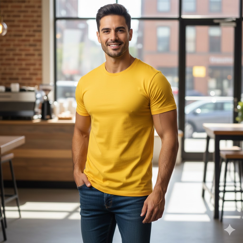 A vibrant yellow slim fit T-shirt made from soft, breathable cotton with a round neck and short sleeves — perfect for casual, everyday, and stylish wear.