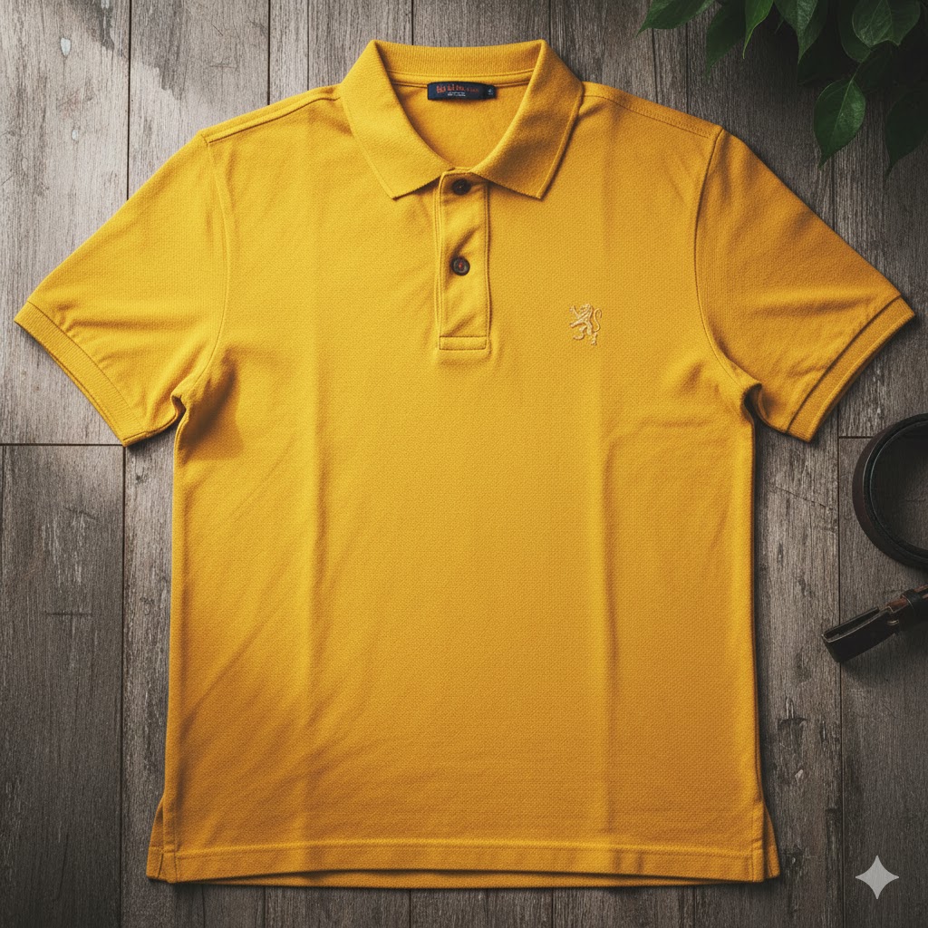 A bright yellow polo neck T-shirt made from soft, breathable cotton. Features a classic fit, long sleeves, and comfortable stretch—perfect for casual wear, layering, and everyday styling.